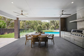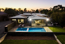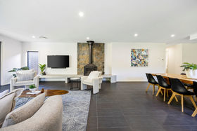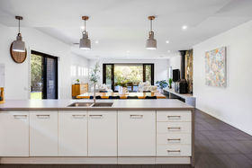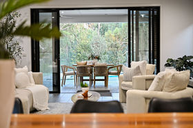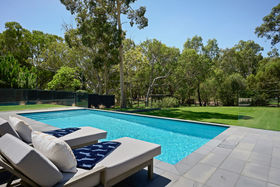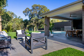 The modern residence comprises five bedrooms, two spacious living areas, a stylish main bathroom, powder room and a private ensuite to the master. The main open-plan living zone and the master suite both capture breathtaking views and open directly onto the stunning outdoor setting and enjoys views across the beautifully tiled in-ground pool with a tranquil lagoon backdrop and expansive manicured lawns that gently roll to the river's edge.